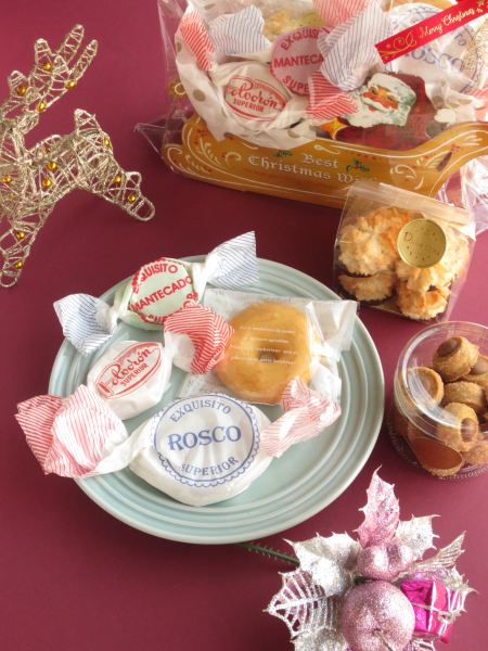 (1) ポルボロン 1個 (2) マンテカード 1個 (3) ロスコ・デ・ヴィノ 1個 (4) 卵黄のクッキー 1個 (5) コキートス 1袋 (6) 紅茶のクッキー 1個